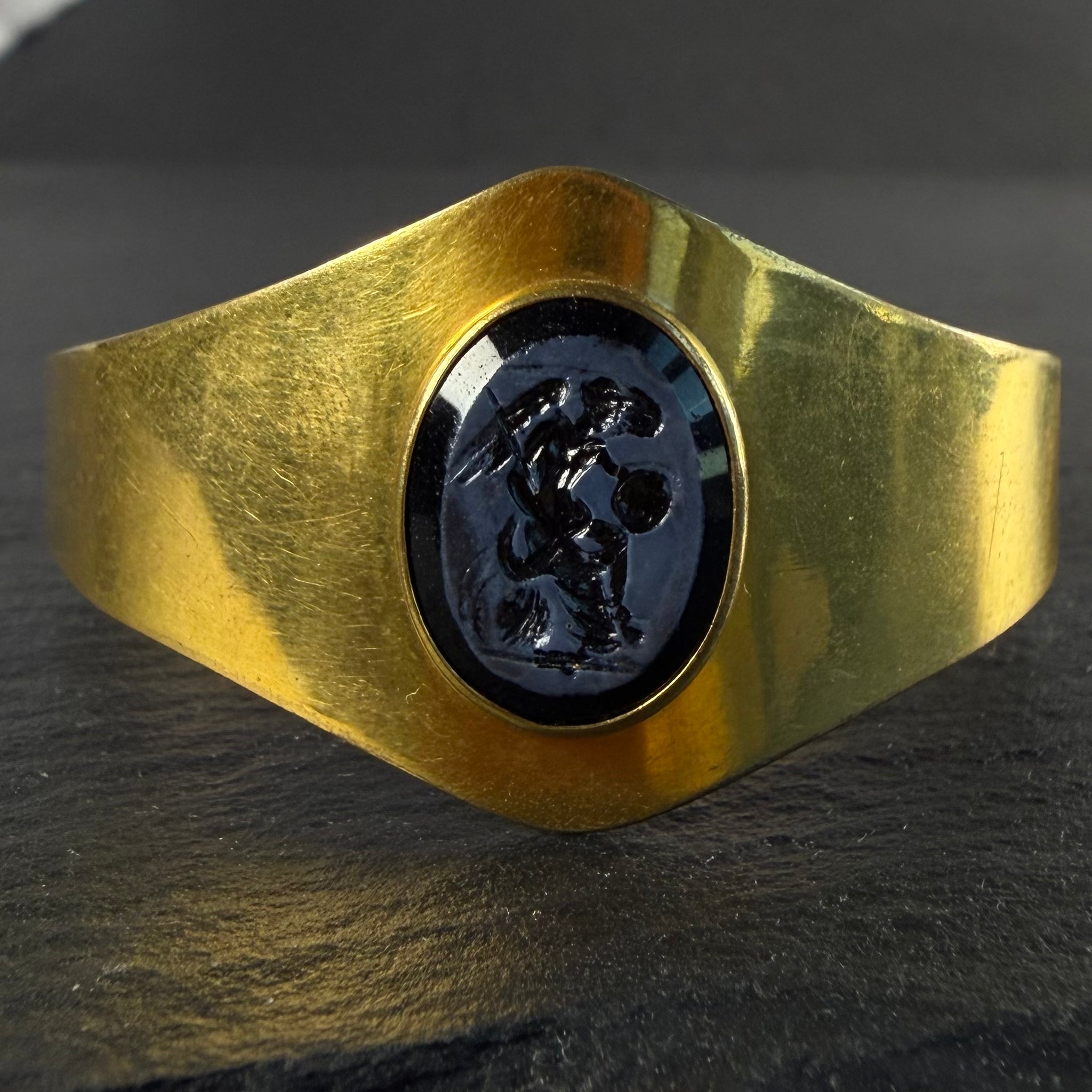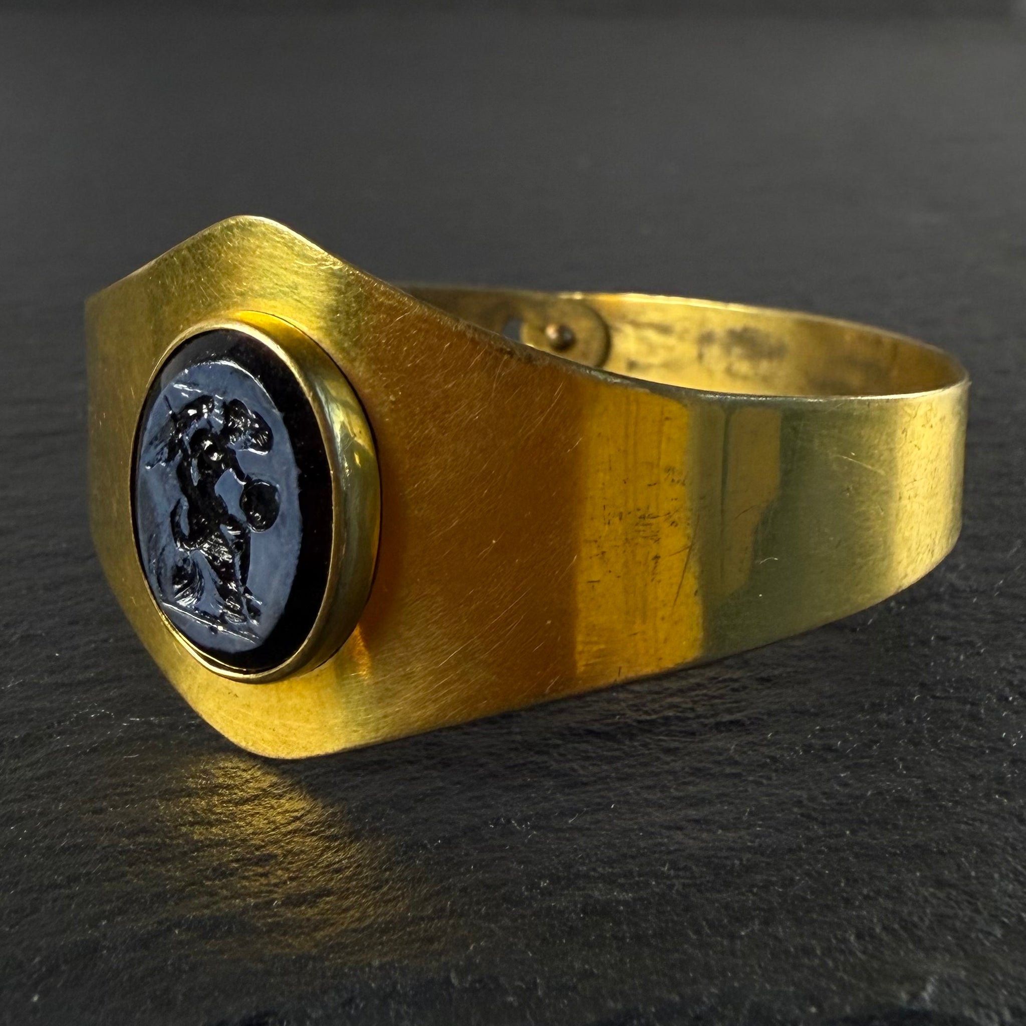 Victorian era, pinchbeck bangle set with agate intaglios.