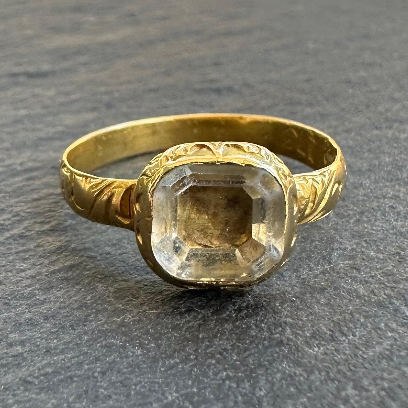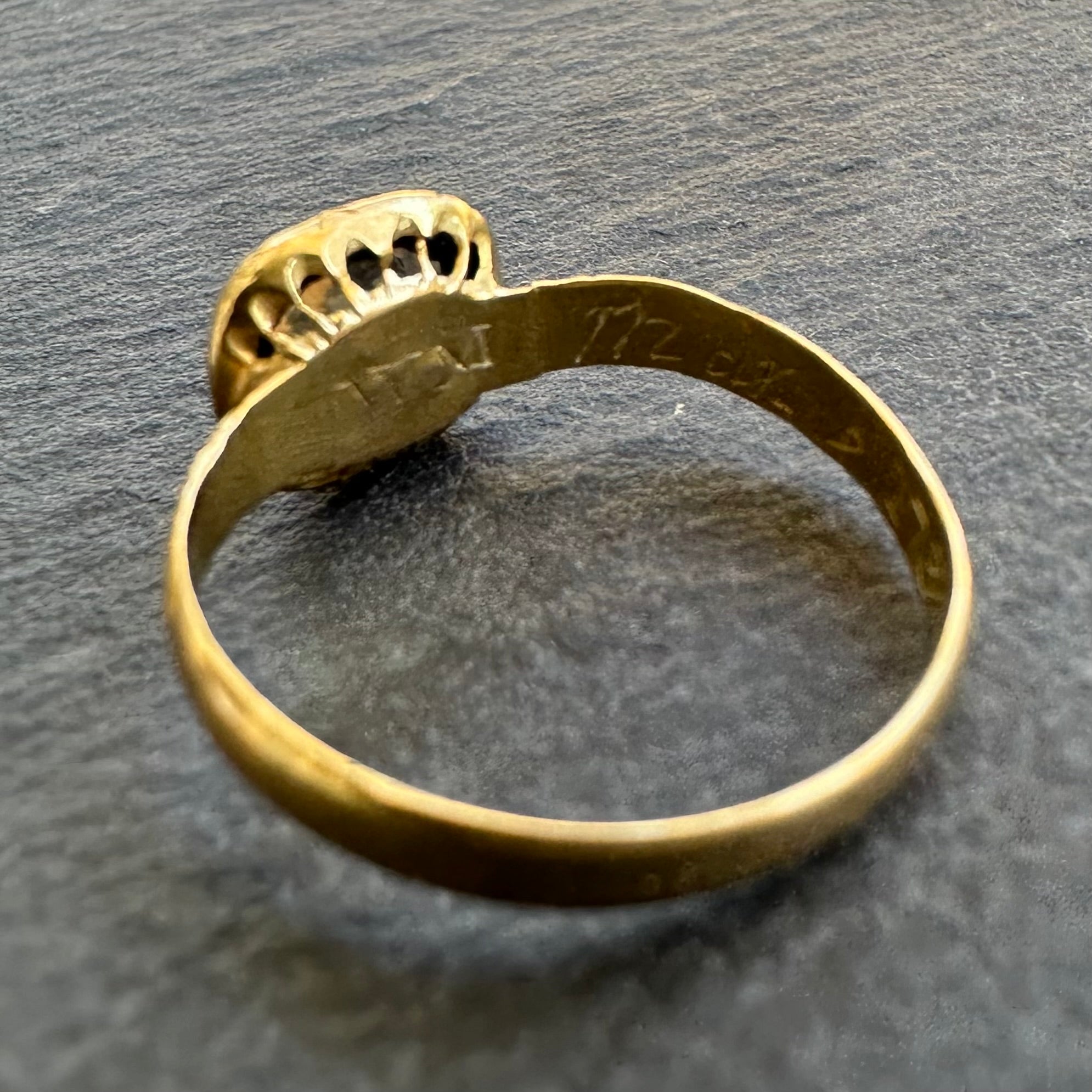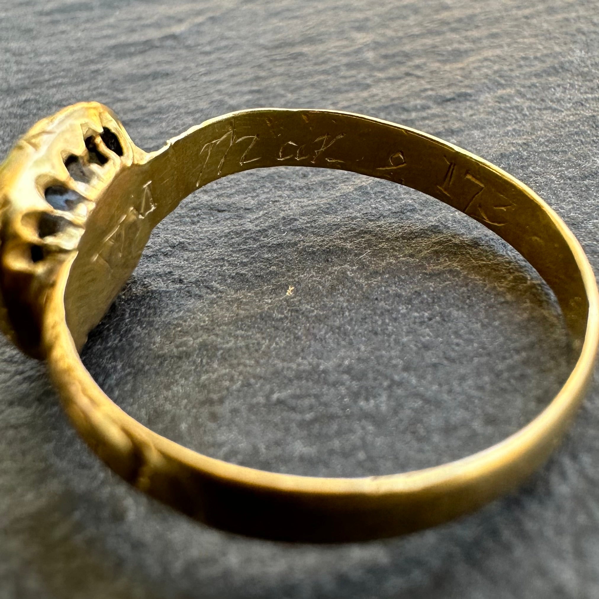 Georgian era, rock crystal mourning ring with interior inscription reading “WM Mar 9 173(0).