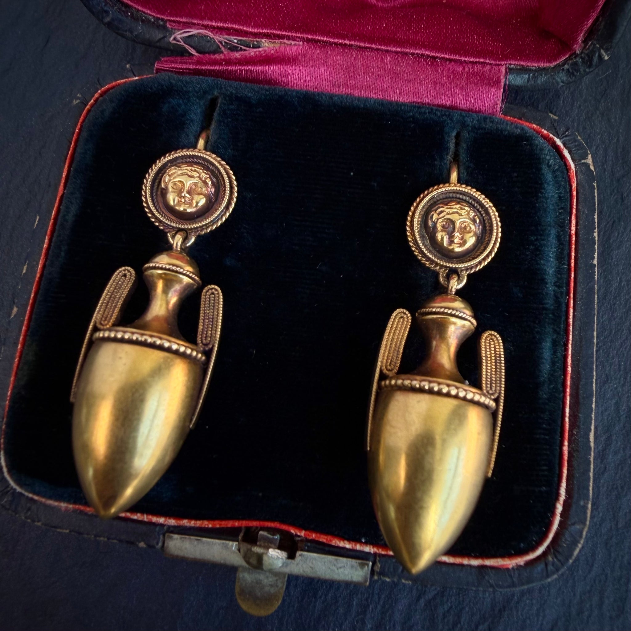 Etruscan revival 18k yellow gold amphora earrings. Immaculate condition.