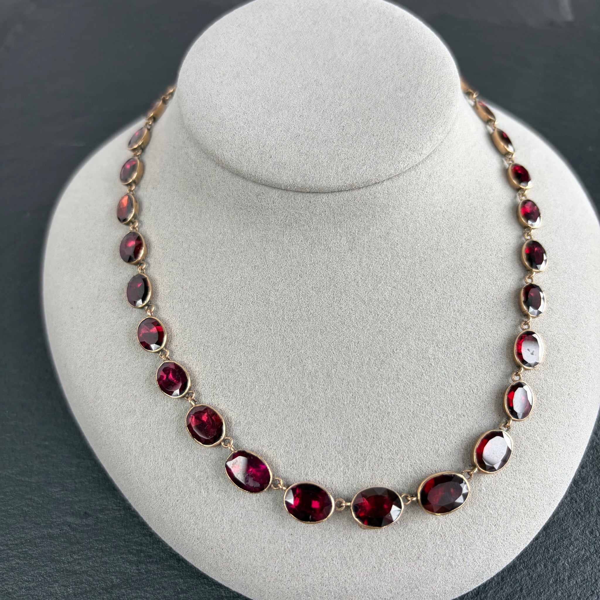 Victorian era, 12-14k rose gold choker length rhodolite garnet rivière c. 1830.