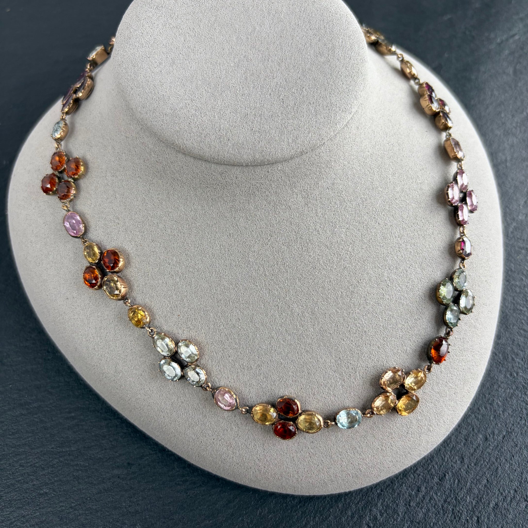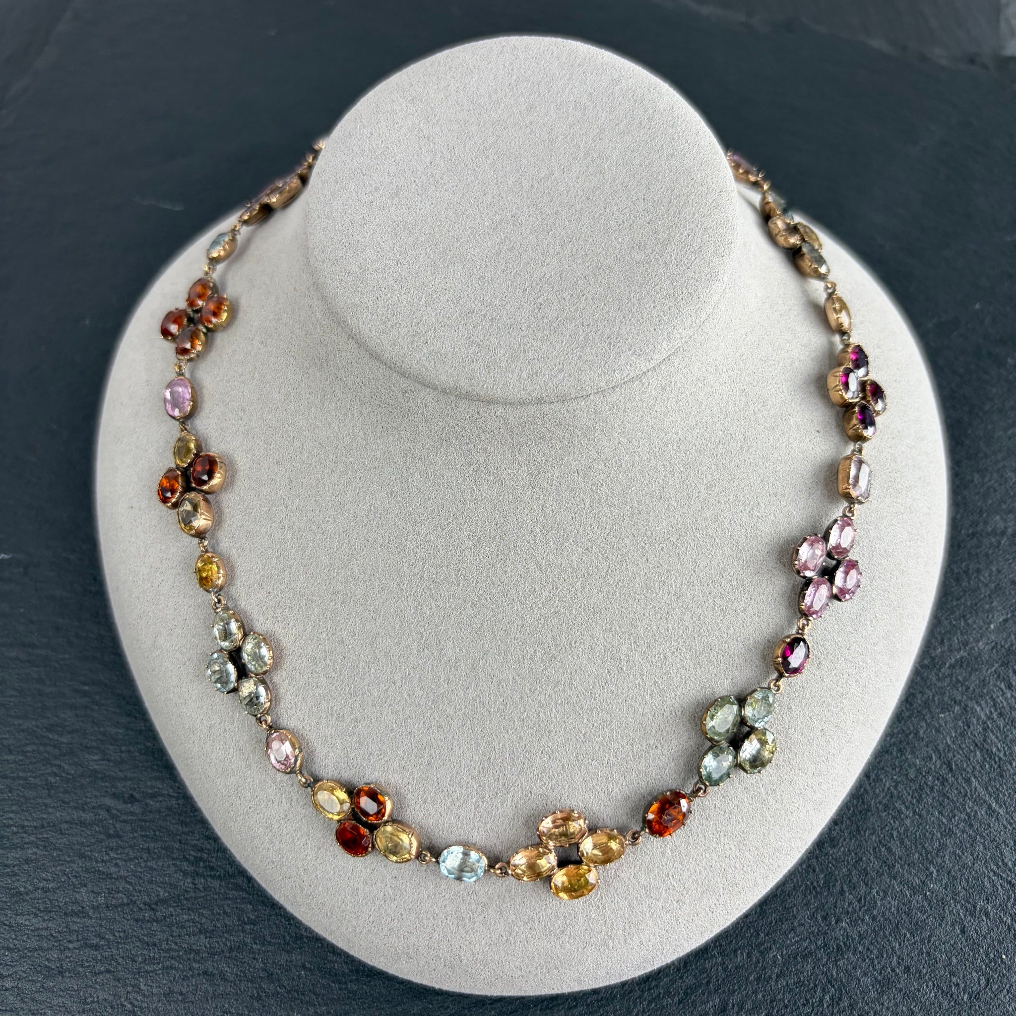 Late Georgian/Early Victorian era rivière necklace featuring faceted gemstones in foiled/closed back 9-12k gold.