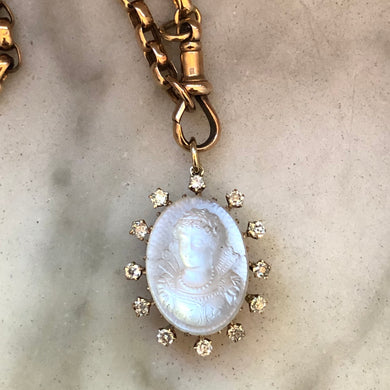 • RESERVED Moonstone and Diamond Cameo Pendant