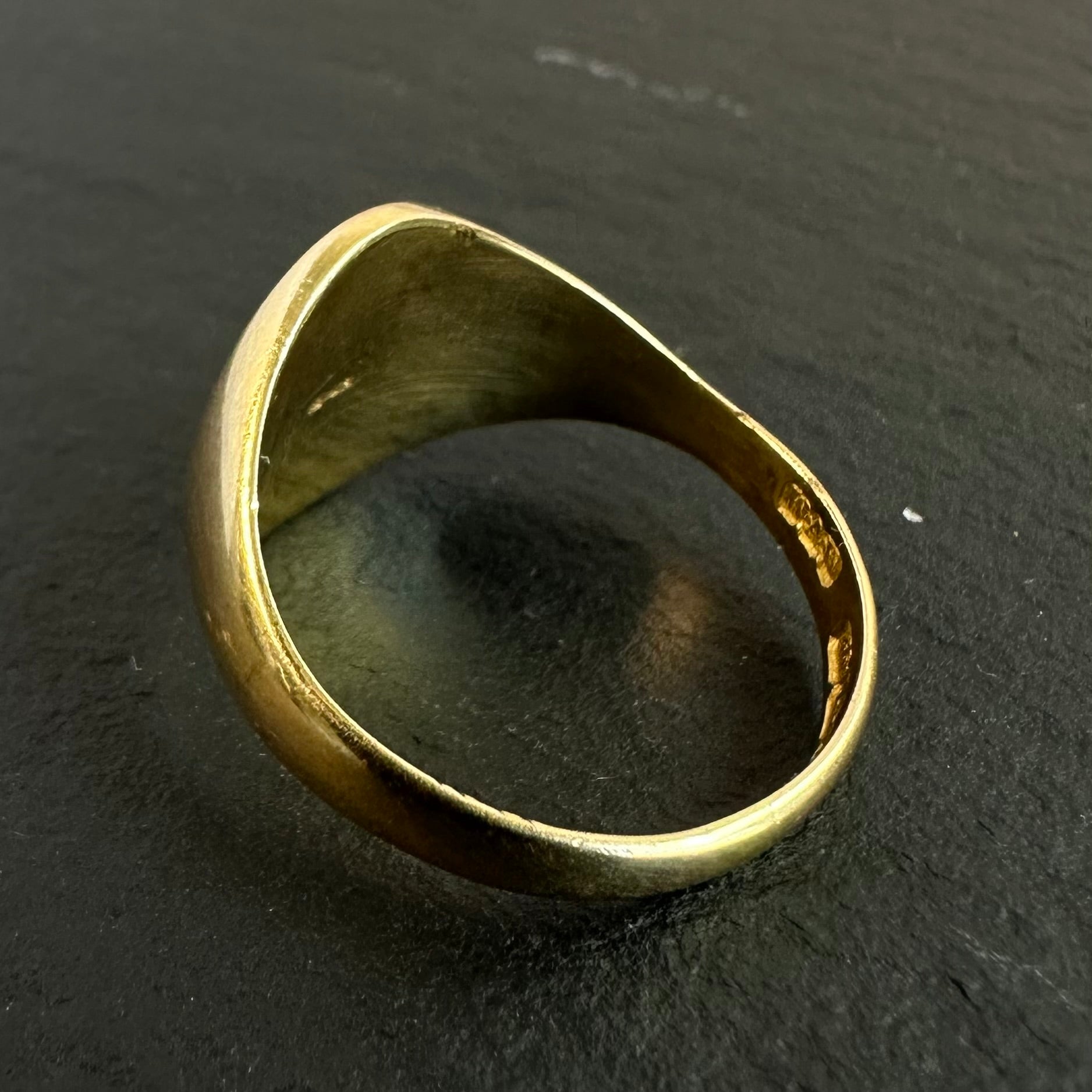 Size 8.75 and can be sized. Measures 14.3mm by 1.6mm. Weight is 6.8 grams. Hallmarks: “W.A.W 18k gold, Birmingham, date letter S, likely 1942.