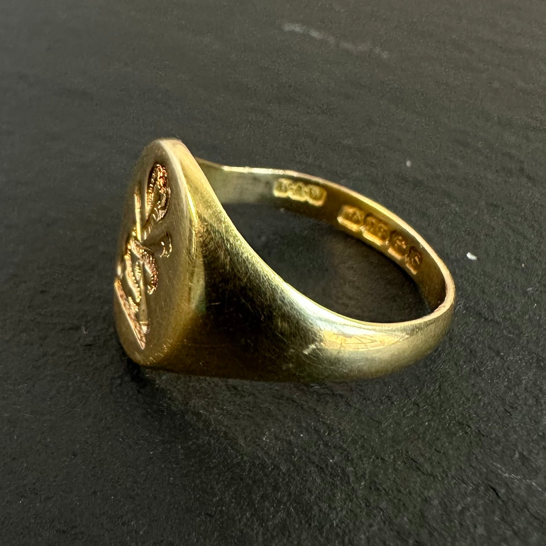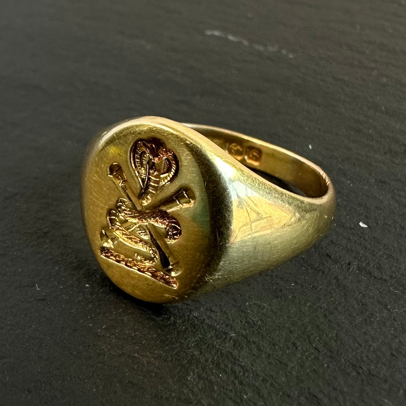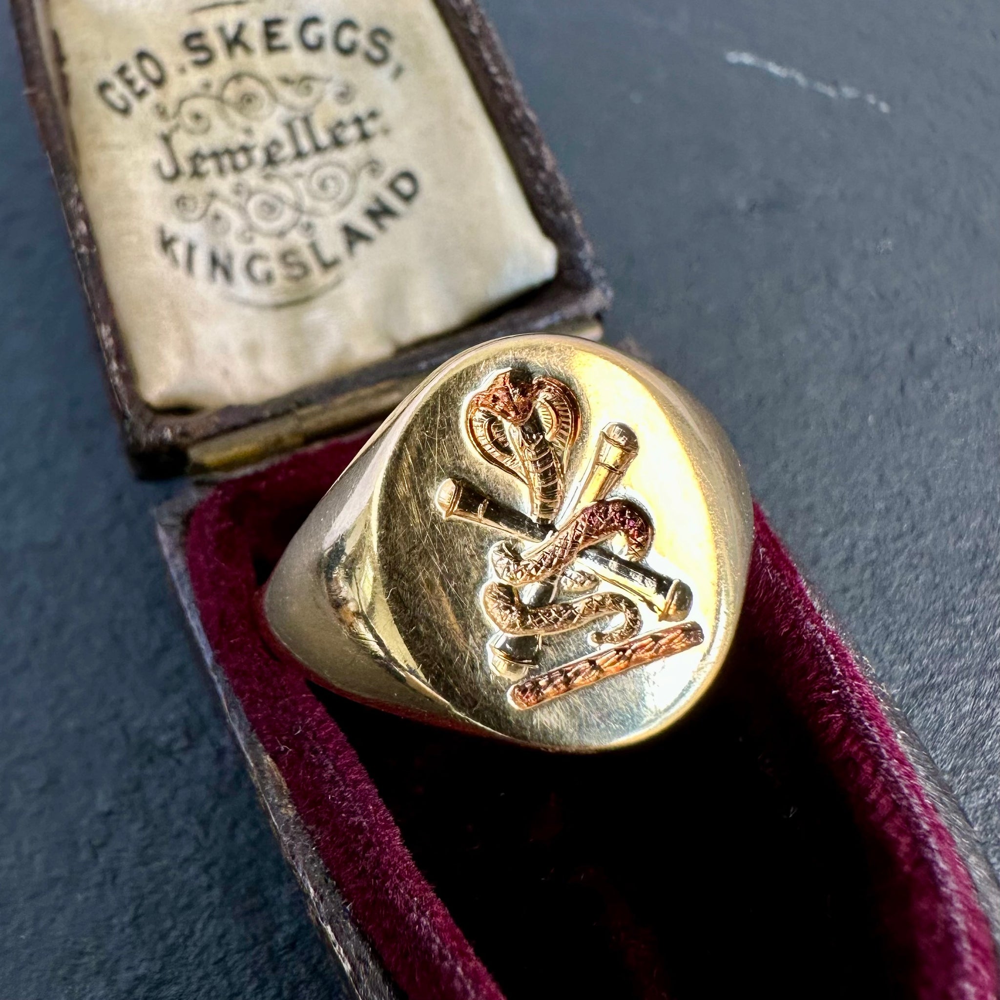 Antique, 18k yellow gold signet ring with twisted cobra motif.